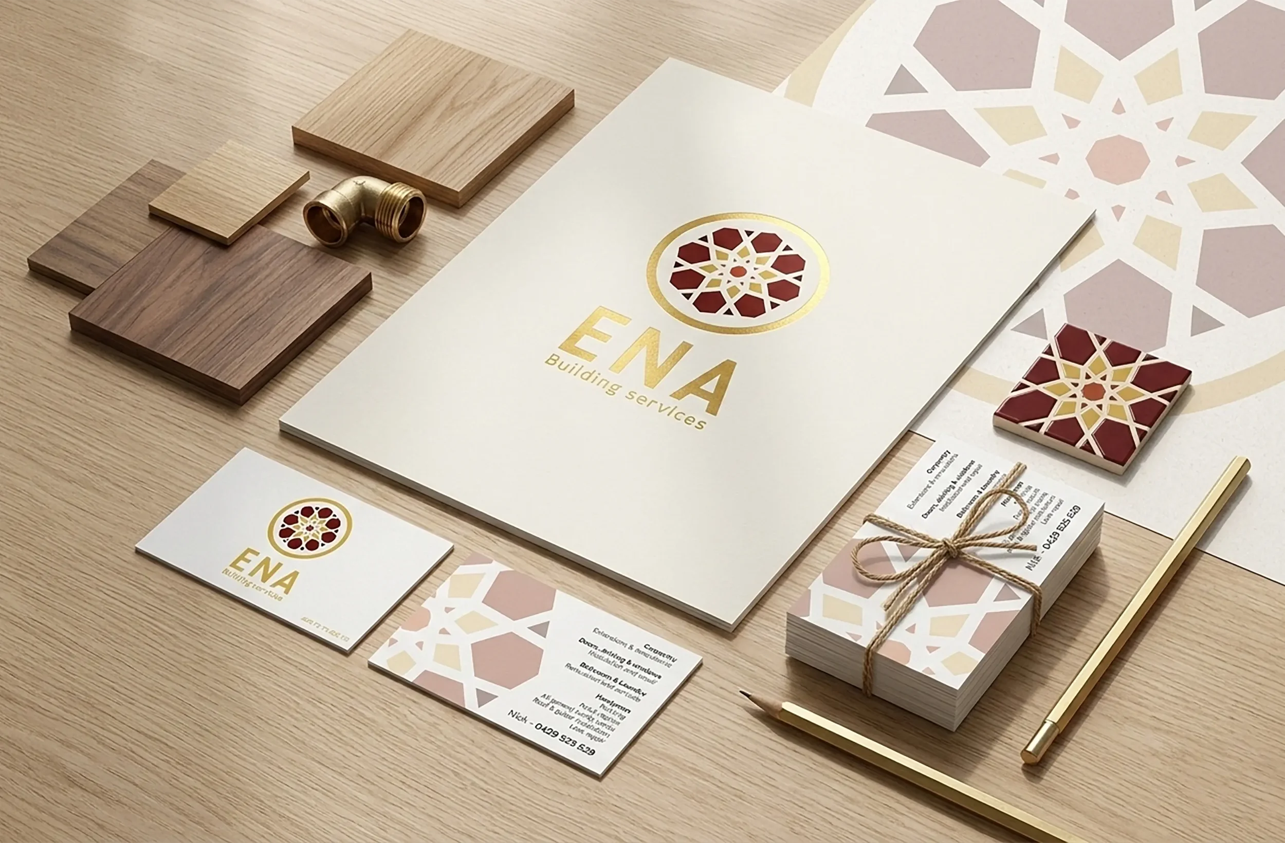 ENA Building Services sought a brand revitalisation that balanced professional modernism with a deep, personal connection to their cultural identity. The primary objective was to transform their existing image into a modern and fresh brand that clearly communicates their expertise in carpentry, renovations, and general building services. By utilising a sophisticated geometric emblem—reminiscent of architectural motifs and intricate craftsmanship—I established a visual language that reflects the precision and structural integrity inherent in their work.